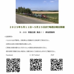 今日5月25日のおはようサイクリングですが、終日雨で気温も低くコンディションが悪いため中止といたします。 ...
